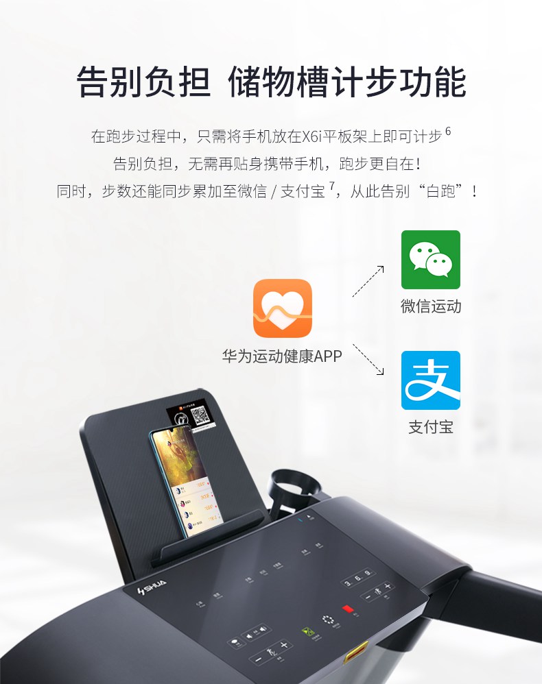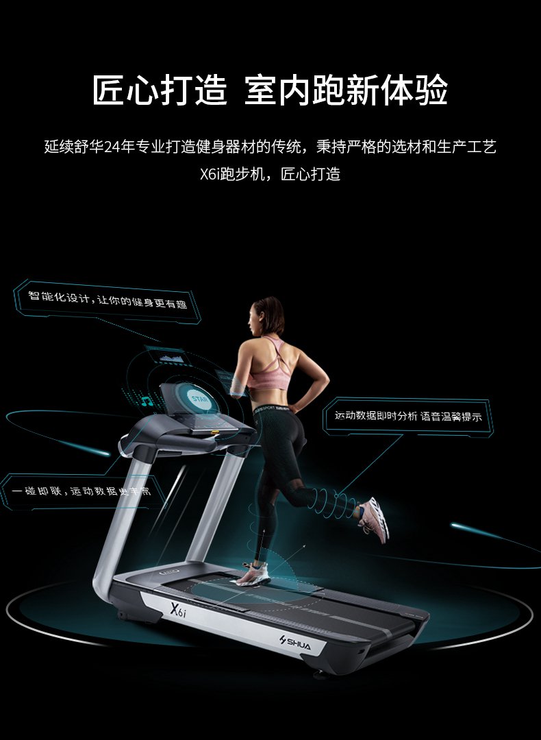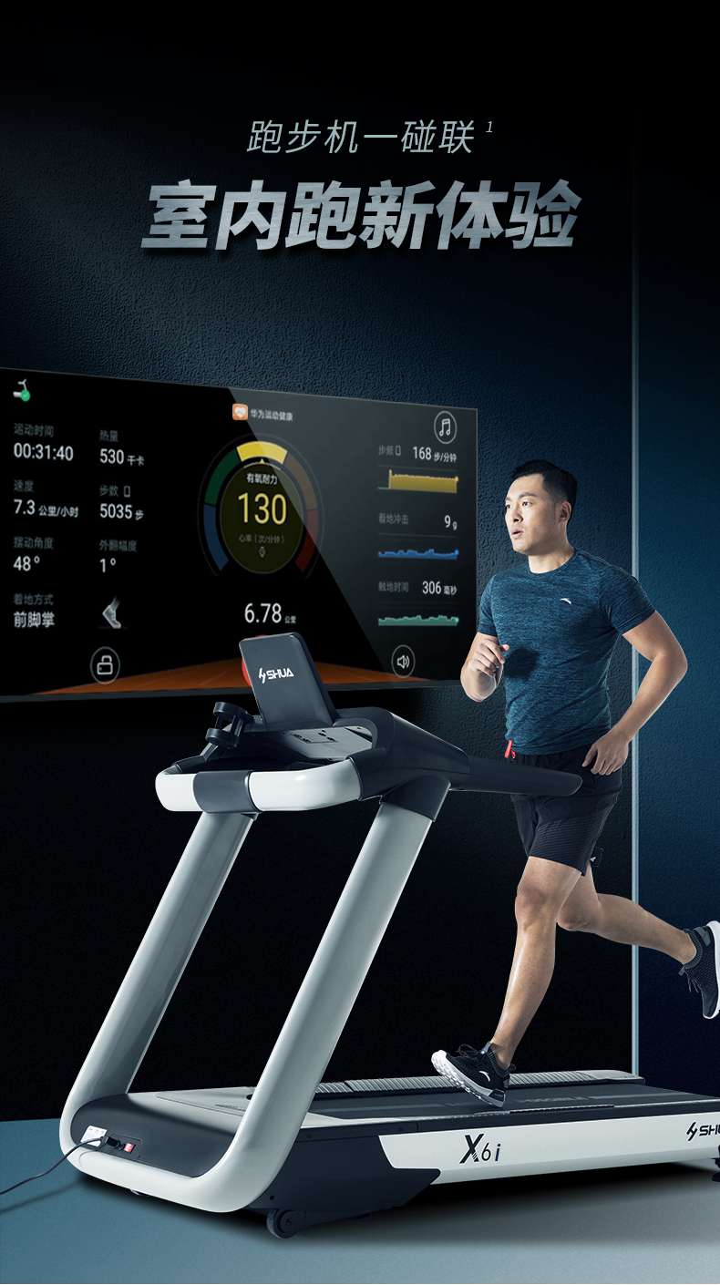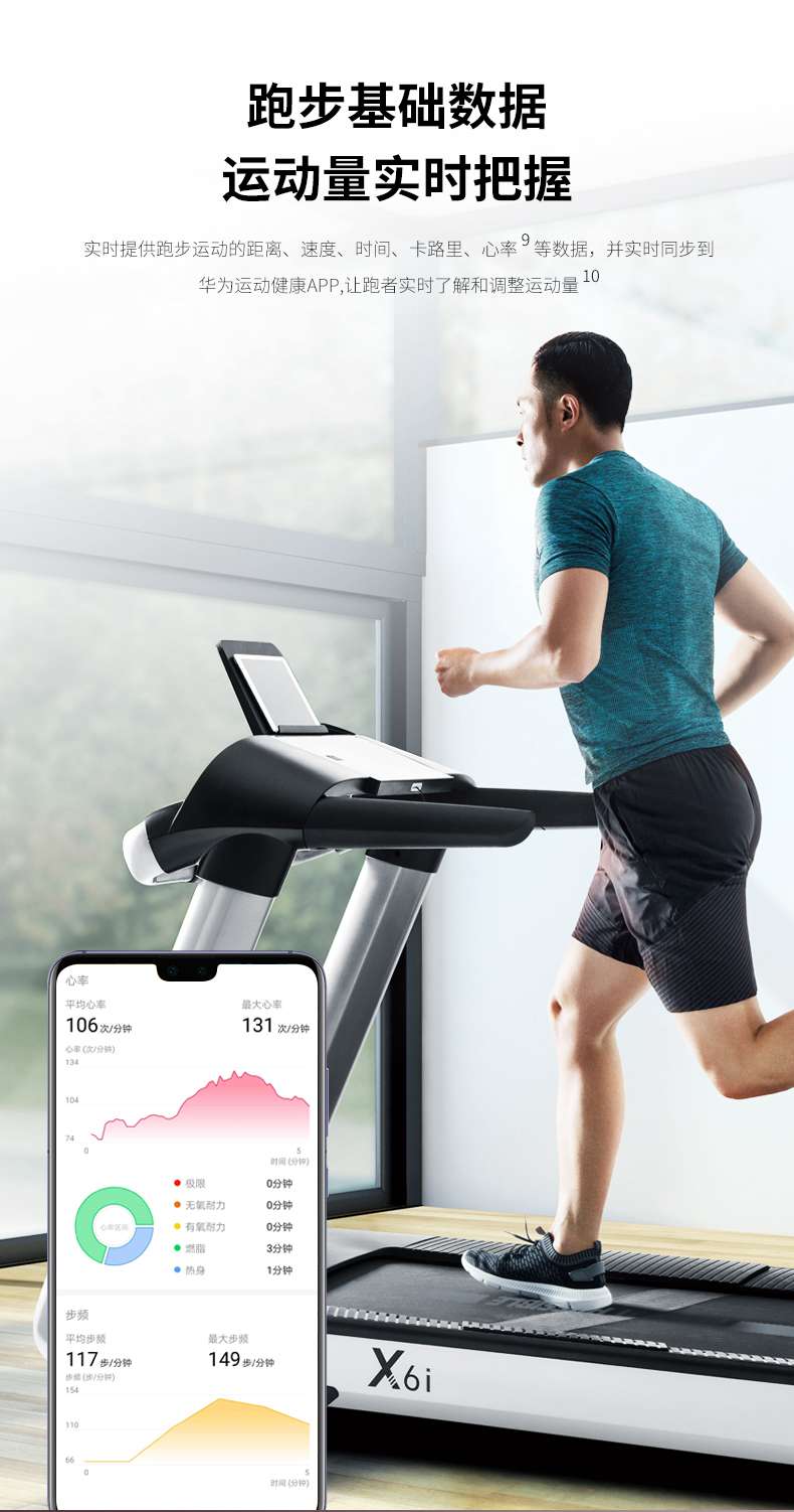 银河Galaxy跑步机-X6心率跑步机,可根据用户运动是实时心率,跑步机自动调节跑步速度、坡度等进行运动强度的调节,更科学;X6i华为版跑步机,可以通过连接华为运动健康APP,监测多种类型跑步数据。欢迎来电咨询~