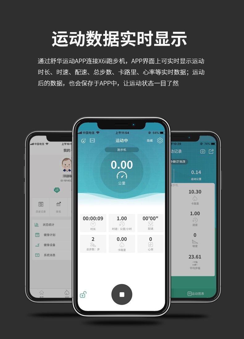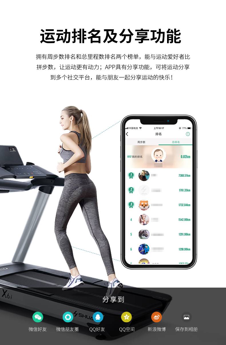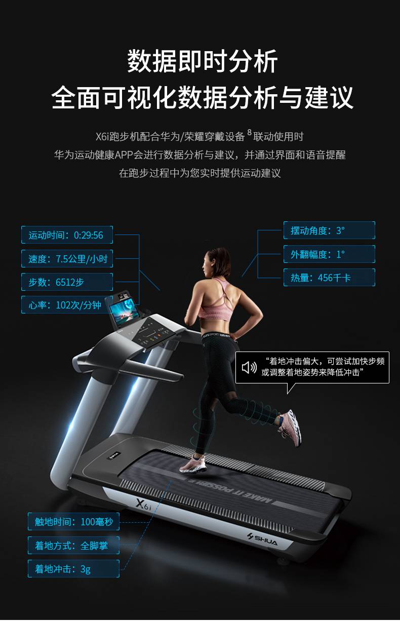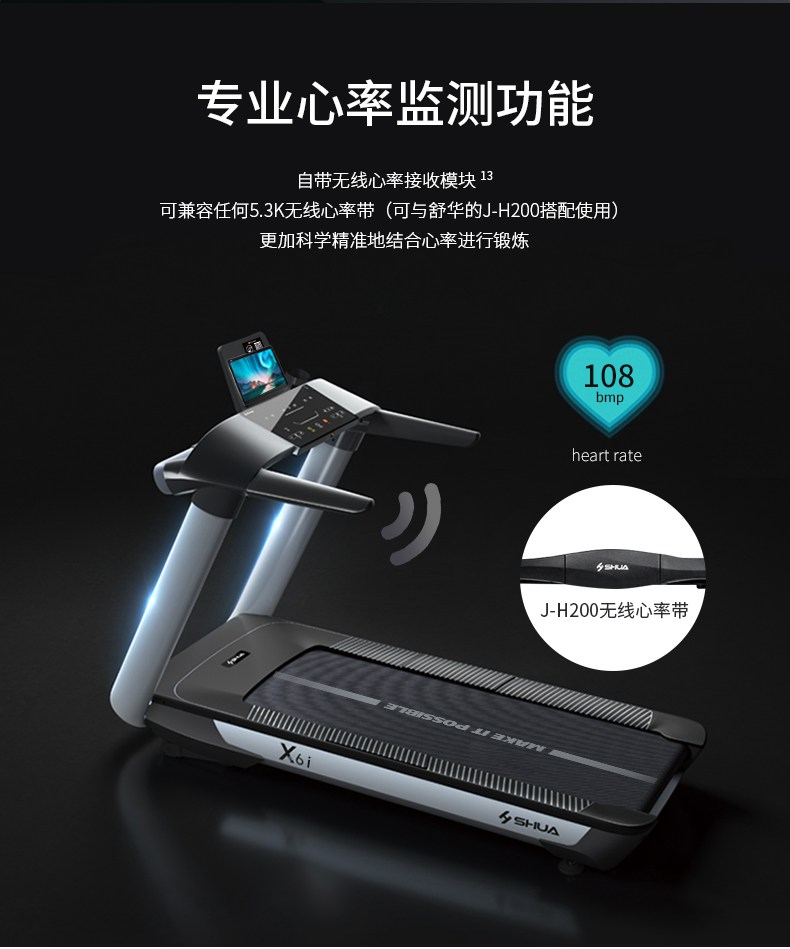 银河Galaxy跑步机-X6心率跑步机,可根据用户运动是实时心率,跑步机自动调节跑步速度、坡度等进行运动强度的调节,更科学;X6i华为版跑步机,可以通过连接华为运动健康APP,监测多种类型跑步数据。欢迎来电咨询~